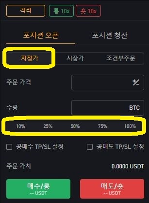 여기서 한가지 궁금해 하시는 점이 또 있는데, 내 시드 전체를 포지션 종료하지 않고 투입 시드의 일부만 부분종료 하고싶은 경우에는 어떻게 해야하는가 입니다. 이 경우 두 가지 방법이 있습니다.